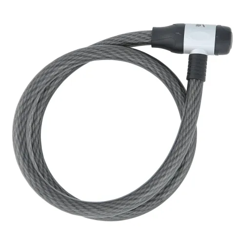 SECURITY PLUS armoured cable lock ´´PK 96´´Ø 18mm, 120cm long, extra strong cable, black / silver head, smoke cable lock head 360° rotatable for easy locking, 1 key with LED-light and 1 replacement key