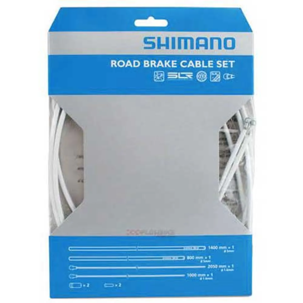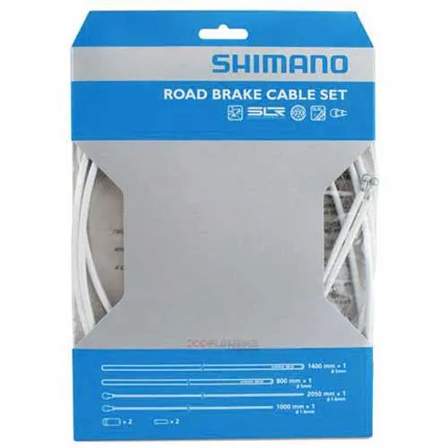 SHIMANO brake cable set ´´Road SIL-TEC´´ consisting of:1 piece inner cable, 1,6 x 1000mm SIL-TEC coated stainless steel 1 piece inner cable, 1,6 x 2000mm SIL-TEC coated stainless steel 2 pieces outer slide sleeve with lace 2 pieces inner cable end caps 2 pieces outer cable sleeves 1 piece brake cable sleeve SLR 1400mm 1 piece brake cable cover SLR 800mm.