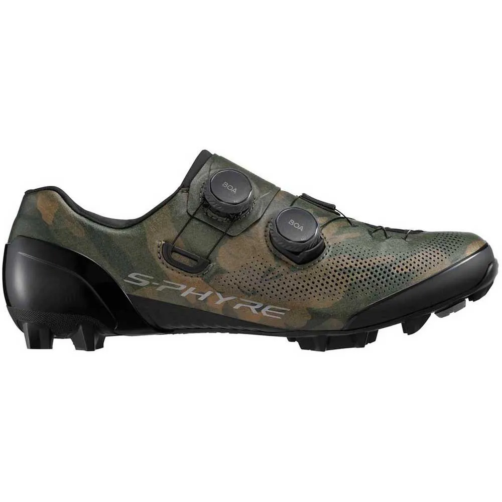 Unleash peak performance with the SHIMANO S-PHYRE XC903, the ultimate race shoe for XC and cyclo-cross. Its pro-guided design features a stiff carbon sole and low stack height for maximum power transfer, while the anti-twist heel cup secures your foot for explosive acceleration. The surround-wrapping upper and dual low-profile BOA® Li2 dials deliver a precise, glove-like fit. Conquer any terrain with the exceptional grip of the lightweight SHIMANO ULTREAD XC outsole, with optional talon spikes for ultimate traction when you need it most