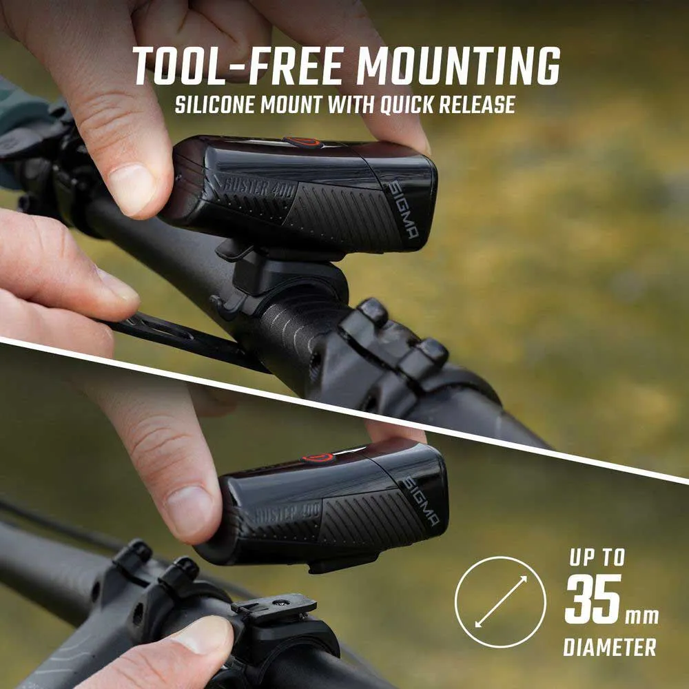 Illuminate your night rides with the SIGMA 400 Fl & Blaze Flash set. This dynamic duo ensures exceptional visibility and safety on any road or trail. The powerful 400 Fl front light cuts through the darkness with a 450-lumen beam, while the Blaze Flash rear light grabs attention to keep you seen from behind. Featuring multiple modes, weather-resistant construction, and easy mounting, this set is perfect for off-road and international adventures. Ride with confidence and conquer the night
