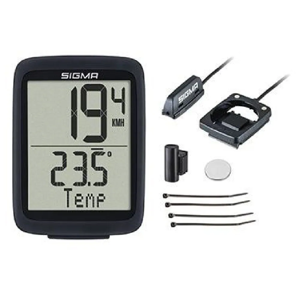 Features -SIGMA BC 10.0 WRClear and easy-to-read information thanks to the two-part 31 x 39 mm displayVery simple and therefore safe operation thanks to a large buttonPractical start-stop function:automatic start when starting and automatic pause when stopDisplay of speed values, trip distance, total distance, time, trip driving time and total driving time, average speed, comparison of average with current speed, maximum speed, temperature.Selection through clear labelingRobust housing and waterproofThanks to the predefined tire sizes, setting up the SIGMA computer for a new bike is easy, from a small children´s bike to a 29´´ bike.