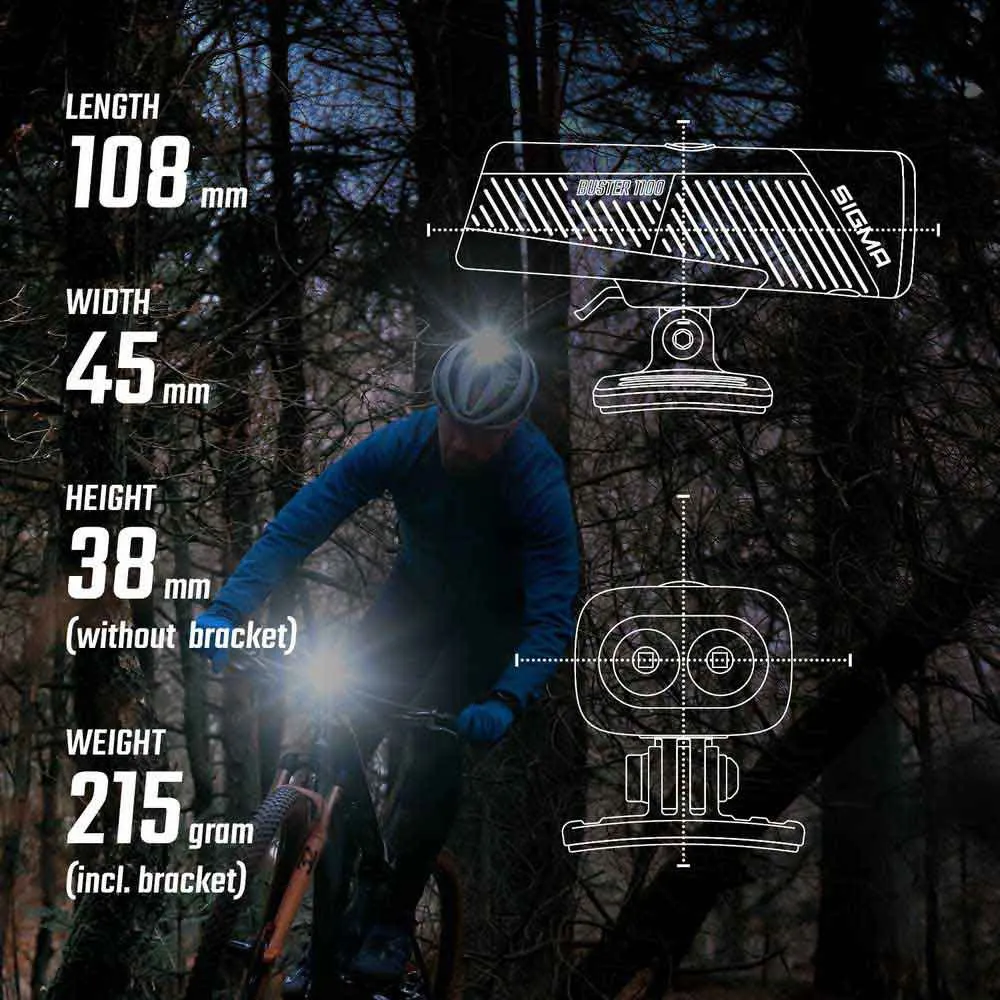 The Powerful 1100 Lumens And A Beam Of 165m, This New Powerhouse Guarantees That The Streets And Trails Are Perfectly Lit. With Six Light Modes And A Battery Life Of Up To 50 Hours, No Night Ride Can Be Long Enough. The Buster 1100 Is Available In Two Versions: One Can Be Mounted On The Handlebar And One Can Be Mounted On The Helmet (Hl). The Powerful, Sporty Light Beam Makes It Perfect For Evening Rides On a Road Bike, Gravel Bike Or Mtb