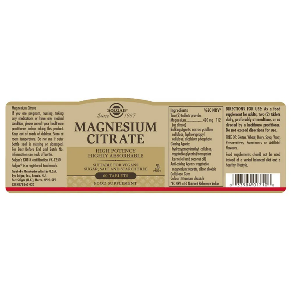 Product description of Solgar Magnesium Citrate tablets 60 units