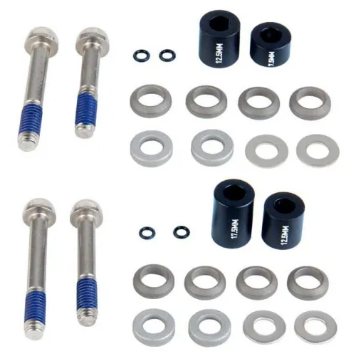 -PM spacer 17,5mm, 12,5mm and 7,5mm, for 160mm rear, 180mm front, stainless screws, 43mm, 38mm, 37mm and 32mm, with washers and semicircle washers.
