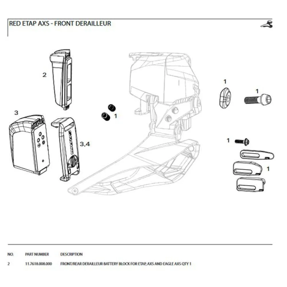 Front/rear derailleur battery block for etap, axs and eagle axs qty 1.