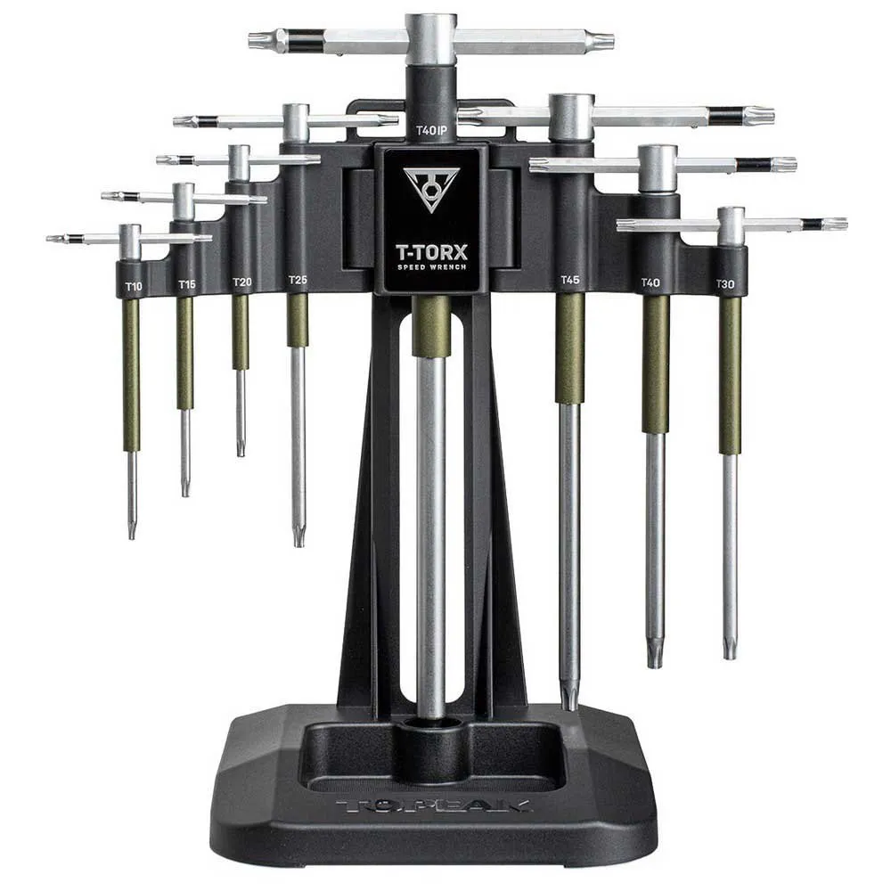 The TOPEAK T-Torx Speed wrench set is a versatile and compact tool kit designed for use in maintenance tasks. This set includes a range of Torx wrenches with sizes ranging from T10 to T25, allowing you to easily tighten or loosen bolts and screws of various sizes.