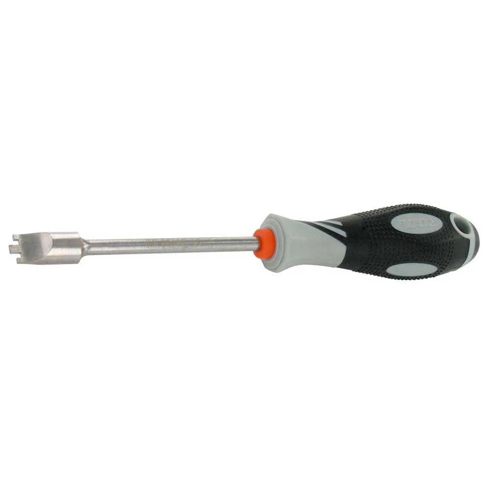 Keep your chainring securely fastened and your drivetrain performing flawlessly with the VAR Chainring Bolt Tool. This essential transmission tool is designed for professional mechanics and discerning home cyclists alike, providing the precision and leverage needed for efficient chainring installation and removal. Eliminate stripped bolts and ensure optimal power transfer with this durable and reliable tool.