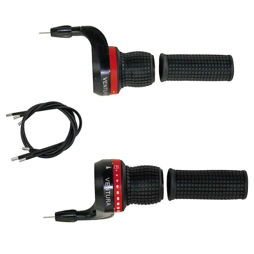 The ergonomic design of the VENTURA Shifter Set ensures comfortable and intuitive operation, allowing you to focus on the trail ahead. The levers are positioned for optimal reach and provide a positive tactile feedback, giving you the confidence to shift gears precisely and efficiently. The VENTURA Shifter Set is designed for riders of all levels, from beginners to seasoned professionals.