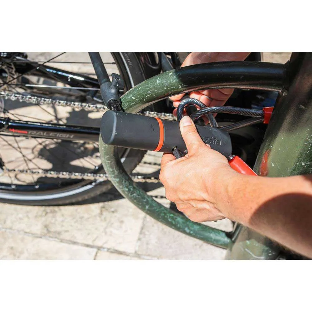 The K-Traz U13 Code + Cable is a code system U-lock with a loop made from very high resistance steel and a cable that guarantees extra security for the wheels and saddle. Fitting to the bike is quick and easy using the mount frame (included) that can be used on any tube from 20 to 80 mm in diameter.