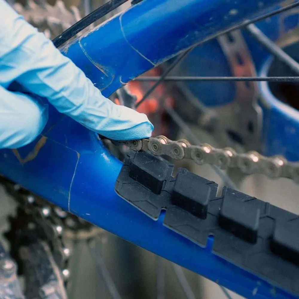 Amortiguación Avanzada de Impactos: Presenta una estructura especialmente diseñada que absorbe y disipa eficazmente la energía de los impactos de la cadena, reduciendo drásticamente el ruido y previniendo daños en el cuadro.