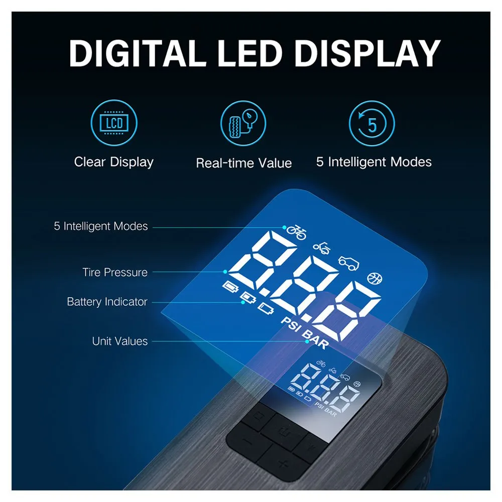 INFLADO AUTOMÁTICO PRECISO E INTELIGENTE: La pantalla LED es fácil de leer y se puede ver claramente el valor de presión actual durante el uso. La mini bomba de aire para bicicleta se apagará automáticamente cuando se alcance la presión deseada. Enchufar y usar.