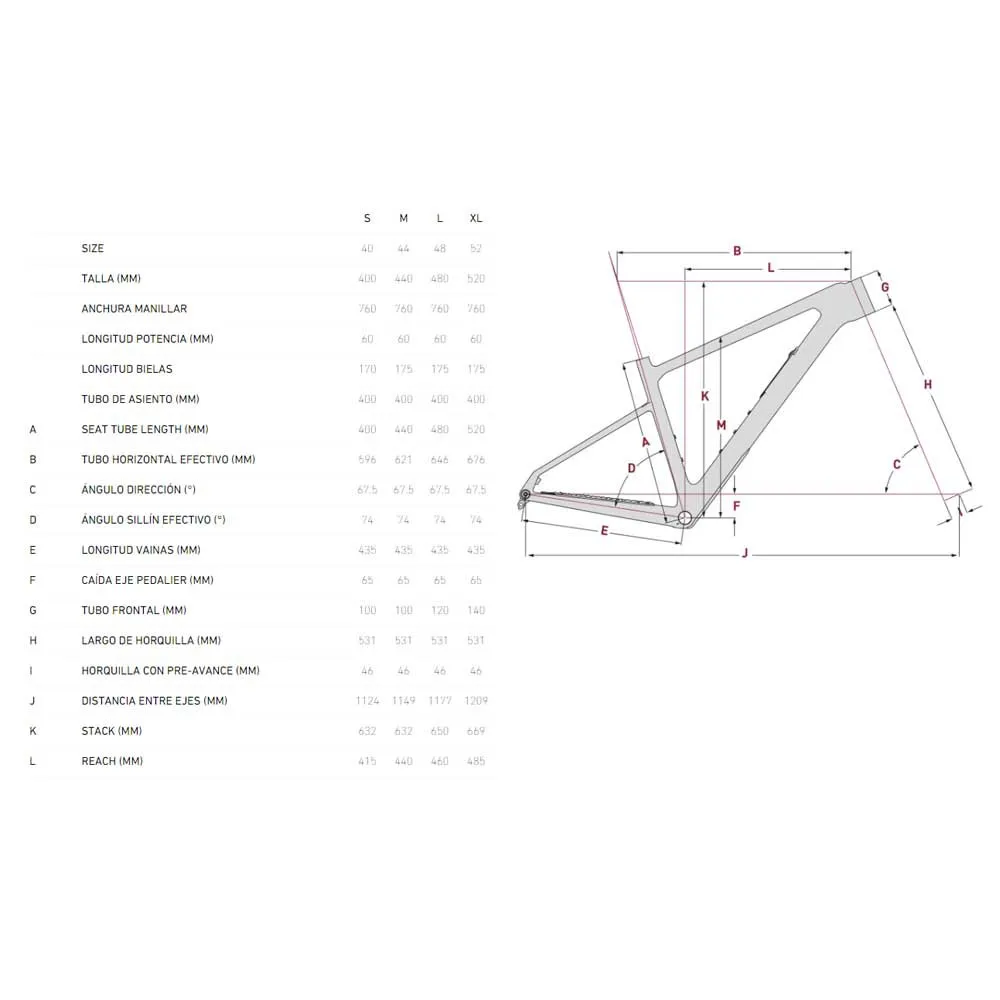 Cuadro de tecnología de carbono, BSA, eje pasante de 148x12 mm, guiado interno de cables, solución de integración del cockpit C.I.S., solución de compartimento interno I.C.S., dirección de ángulo variable, Post Mount 160 mm