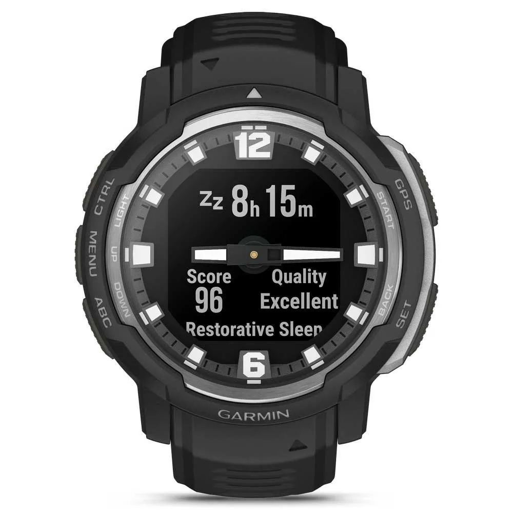Experimenta lo mejor de ambos mundos con el Garmin Instinct® Crossover. Este resistente smartwatch híbrido combina manecillas analógicas clásicas y luminiscentes —mantenidas con precisión por la tecnología RevoDrive™— con una pantalla digital inteligente. Diseñado para resistir, es resistente al calor, a los golpes y al agua hasta 10 ATM. Olvídate de la carga diaria con una increíble duración de batería de hasta 28 días. Monitoriza tu salud con sensores avanzados, navega con soporte multi-GNSS y supera tus metas con aplicaciones deportivas integradas, todo desde tu muñeca. Es la herramienta definitiva para cualquier aventura