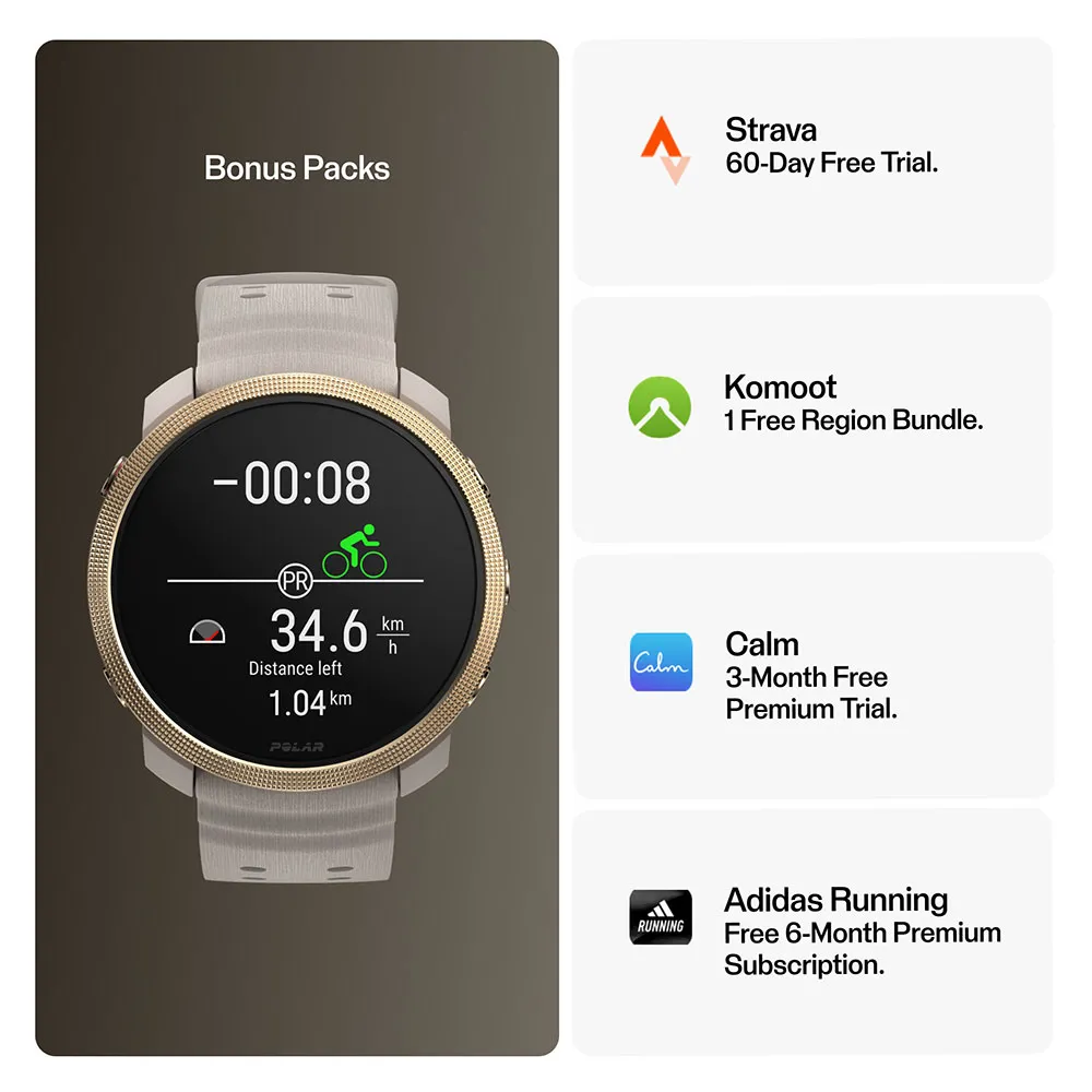 - Sleep Wise: te ayuda a comprender cómo el sueño contribuye a tu nivel de alerta diurna y a tu preparación para rendir. Además de la cantidad y la calidad de tu sueño reciente, el Polar Vantage M3 también tiene en cuenta el efecto del ritmo del sueño.