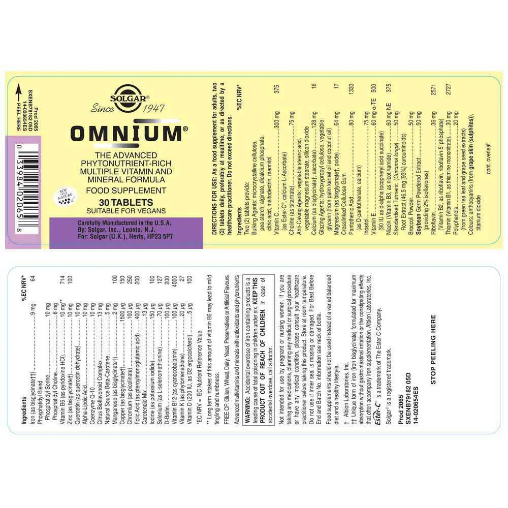 Solgar® Omnium® es nuestro multivitamínico premiado de primera calidad, que contiene la mejor combinación de nutrientes avanzados en una conveniente dosis de dos veces al día.