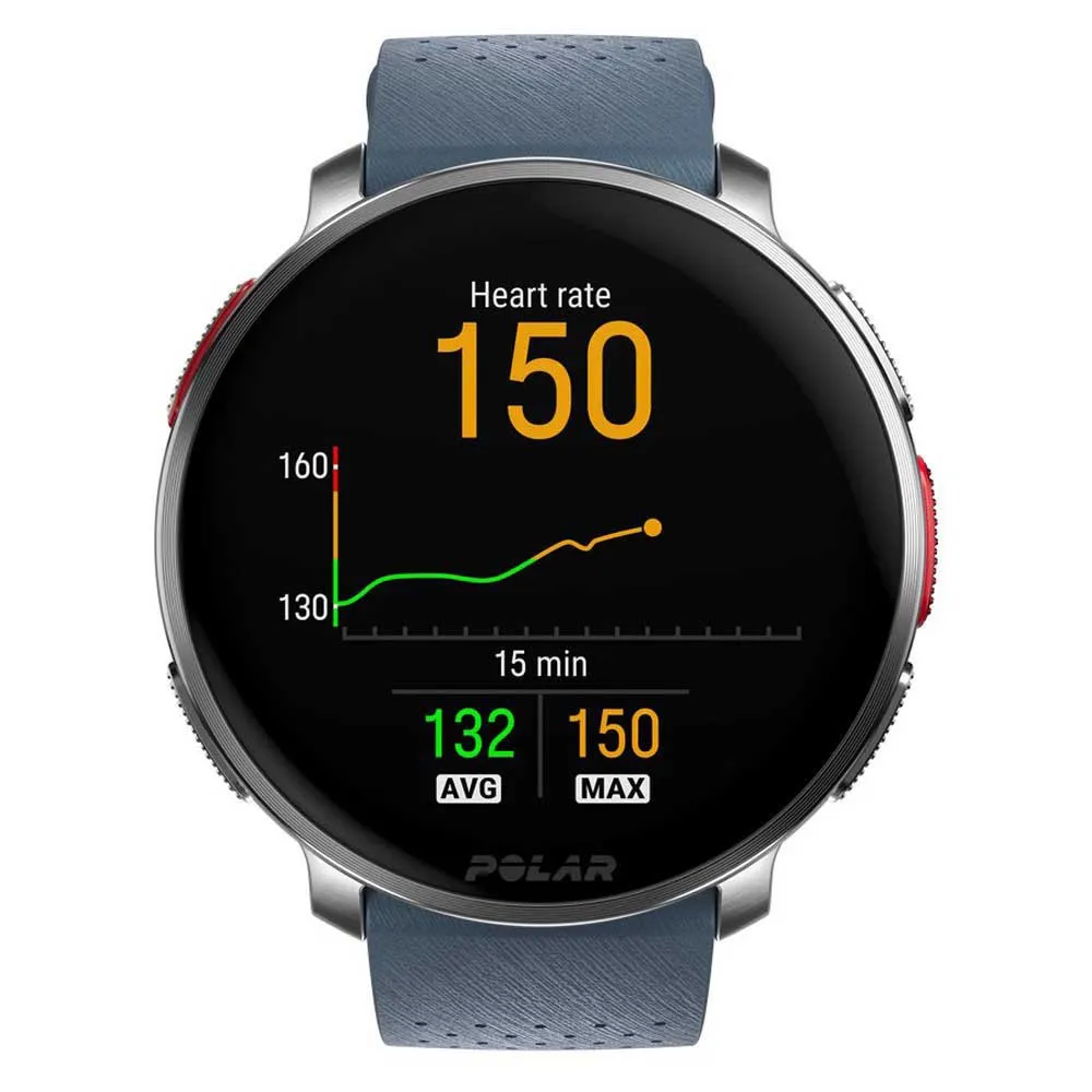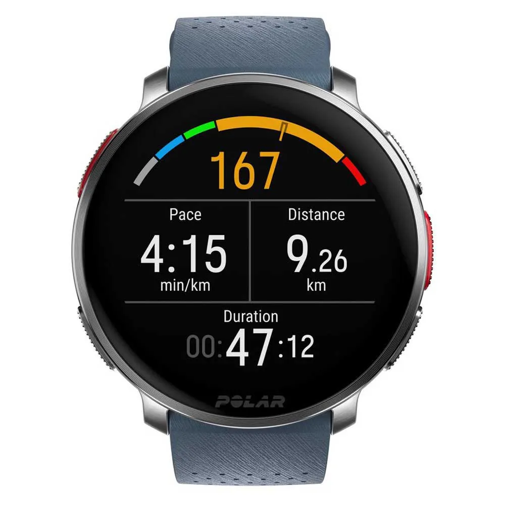 Biosensorivälineiden kokoelma, AMOLED-näyttö, kaksitaajuinen GPS, kartat ja markkinoiden kattavin valikoima harjoittelu- ja palautumistyökaluja. Esitys on valmis ja Polar Vantage V2 -älykäs urheilukello on valmis antamaan elämäsi suorituskyvyn.