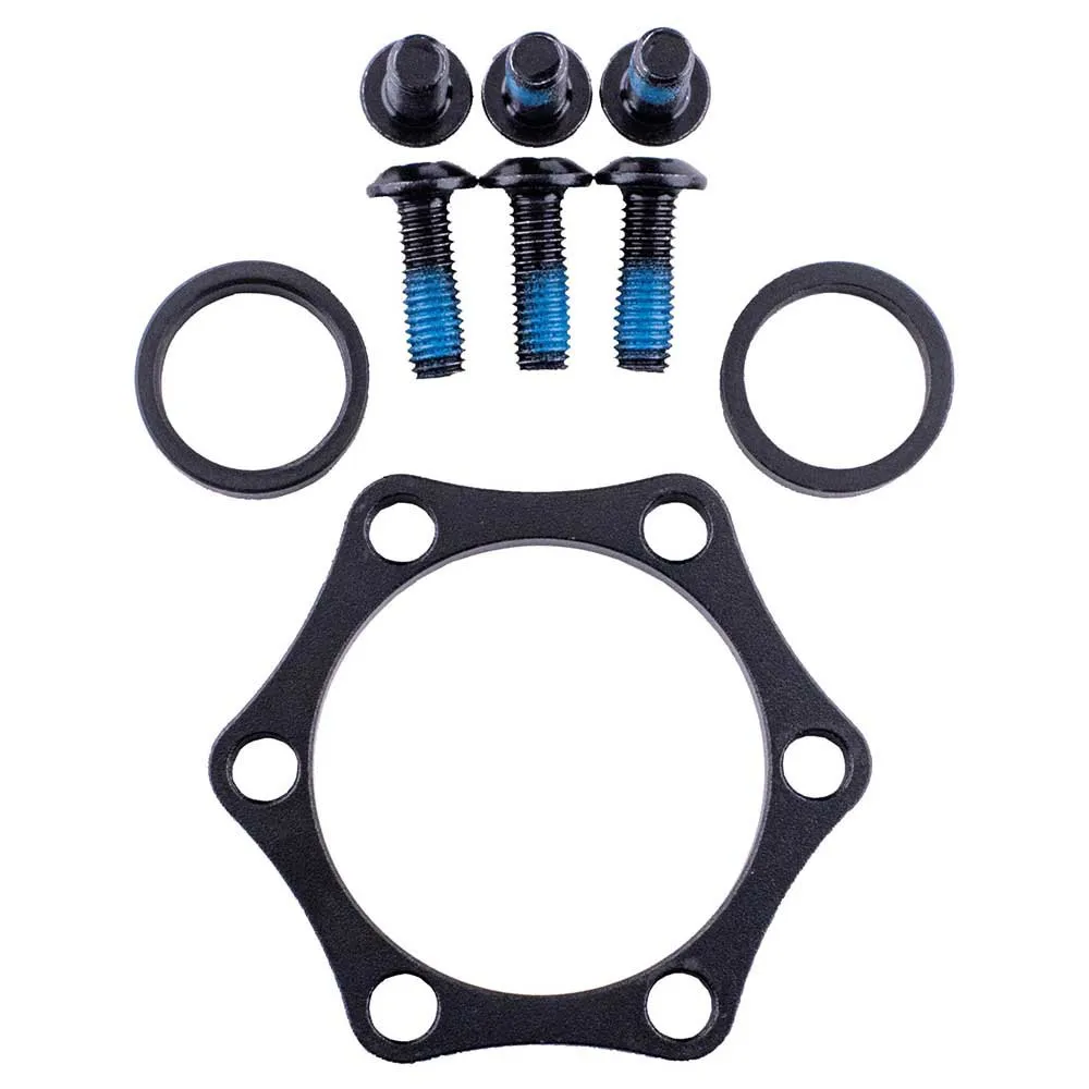 - Mukana sarjassa: 2x 5 mm akselin levennysholkkia, 5 mm jarrulevyn adapterilevy ja 5x 15 mm M5-ruuvia