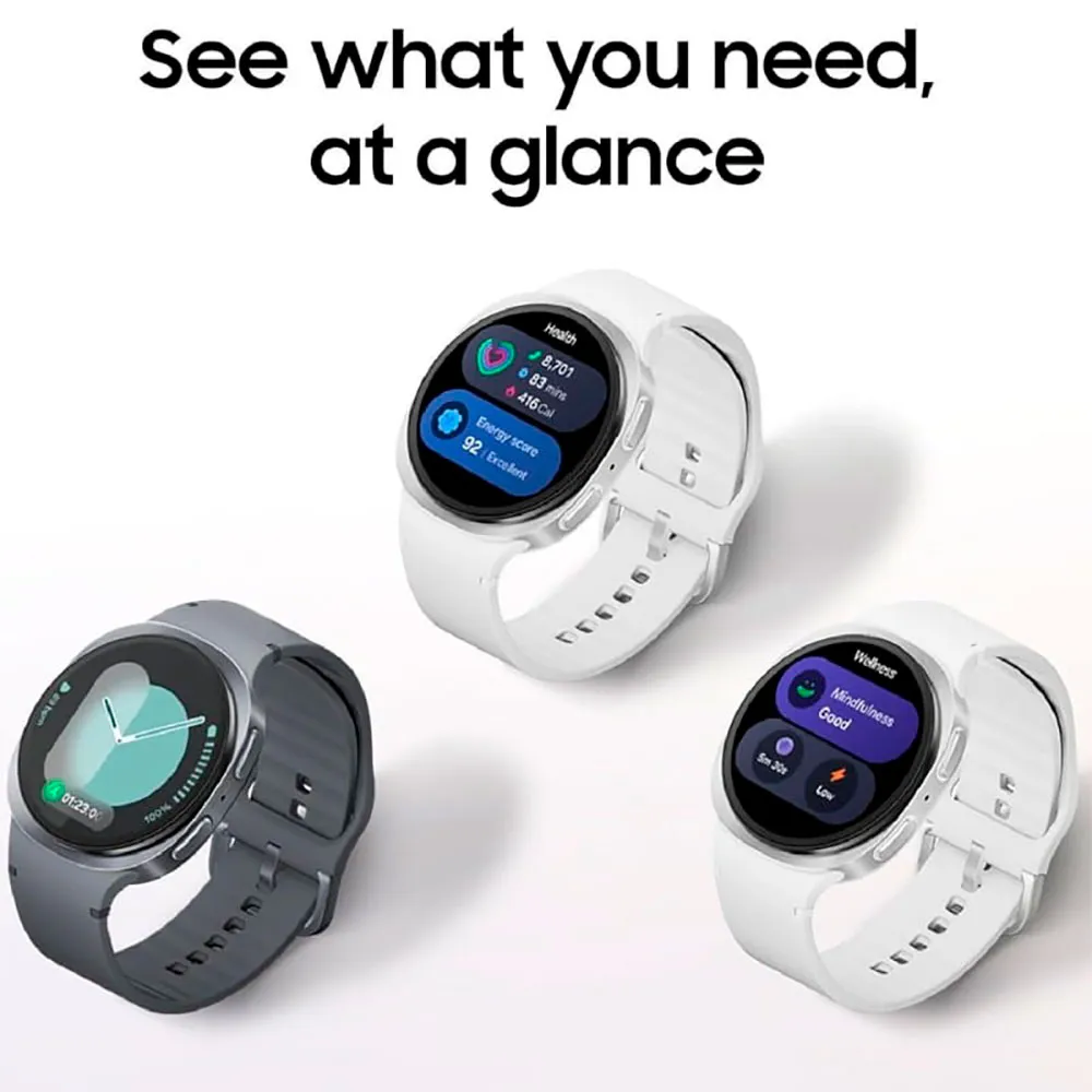 Esittelyssä Samsung Galaxy Watch8, täydellinen hyvinvointikumppanisi. Sen tyylikäs 40 mm:n alumiinirunko on 11 % ohuempi ylivoimaisen mukavuuden takaamiseksi. Upea 1.34 tuuman Super AMOLED -näyttö loistaa uskomattomalla 3000 nitin kirkkaudella, samalla kun tehokas 3 nm:n prosessori ja 32 Gt tallennustilaa takaavat sujuvan suorituskyvyn. Seuraa kaikkea henkilökohtaisesta energiapisteestäsi ja unenlaadustasi sykkeeseen, verenpaineeseen ja stressiin. Edistyksellisen juoksuvalmentajan, kaksitaajuuksisen GPS:n ja Google Gemini AI:n ansiosta se on älykkäämpi kuin koskaan. Saat jopa 30 tuntia akunkestoa ja määrittele päivittäinen rutiinisi uudelleen
