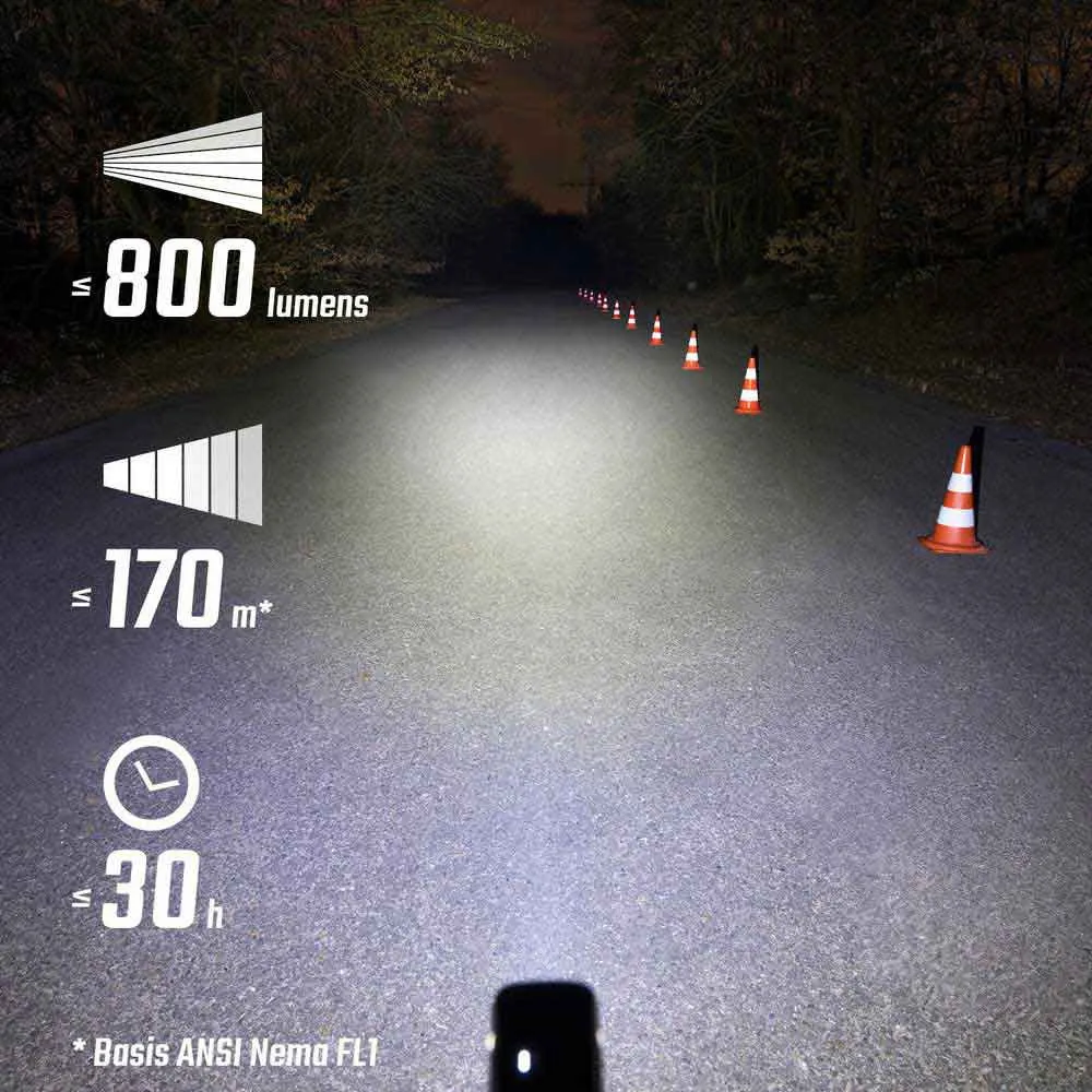 Buster 800 loistaa pimeässä, epätasaisessa maastossa ja ahtaissa MTB-poluissa.