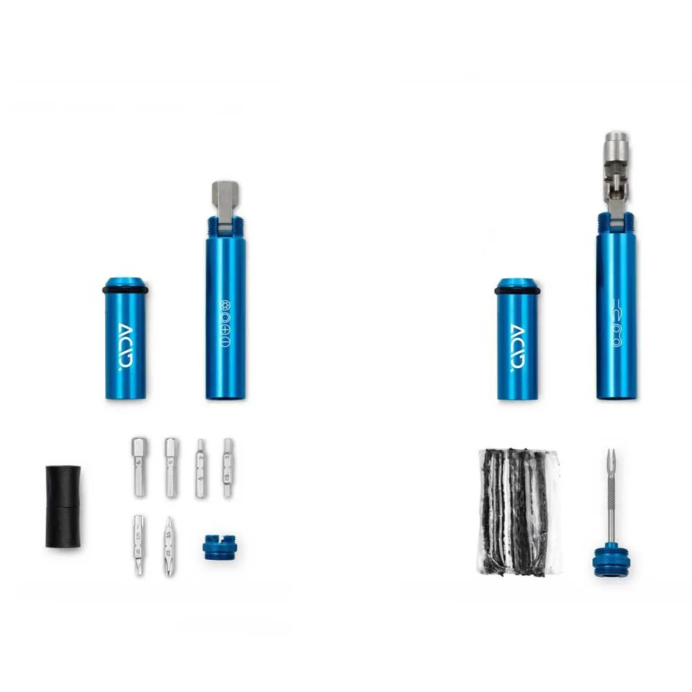 Le multi-outil Acid Husk 18 est un kit d´outils compact et de qualité supérieure au design ultra-cool. Les deux tubes métalliques tiennent parfaitement dans votre main. À l´intérieur, vous trouverez 18 fonctions, toutes soigneusement protégées contre la poussière et la saleté. L´outil pour chaîne et l´extension de mèche s´ouvrent à 90° pour un meilleur effet de levier. Les deux tubes Husk 18 peuvent être cachés à l´intérieur de votre guidon à l´aide de l´Acid GILink pour Husk ou montés sur le porte-bidon à l´aide du support de cadre Acid.