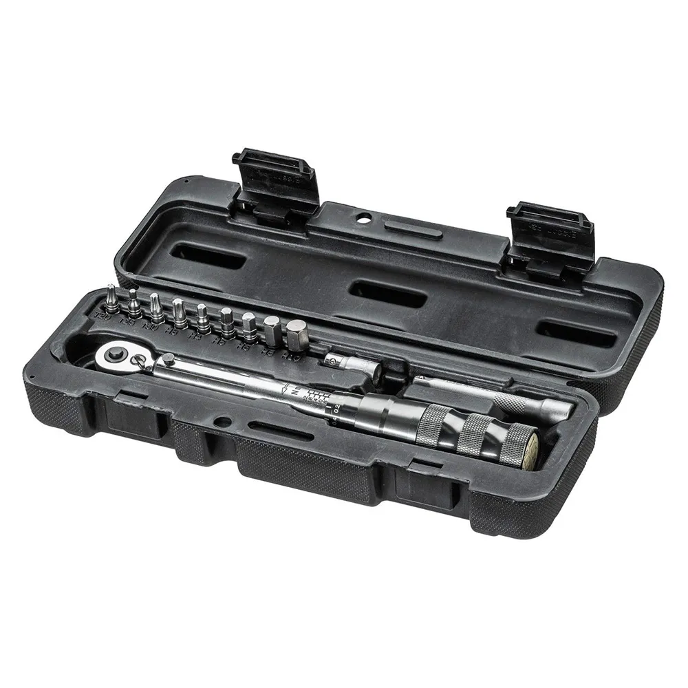 Les produits de précision exigent des outils de précision. Notre clé dynamométrique est conçue pour faciliter l´assemblage et l´entretien des composants de vélo haut de gamme (en particulier la fibre de carbone). Il suffit de régler la pression de serrage souhaitée, et vous pouvez serrer les boulons sans risque d´endommager le composant ou la tête de boulon. Le kit comprend un jeu d´embouts, une rallonge, des instructions et un étui rigide pour protéger l´outil. C´est un outil essentiel dans l´arsenal de tout mécanicien amateur.