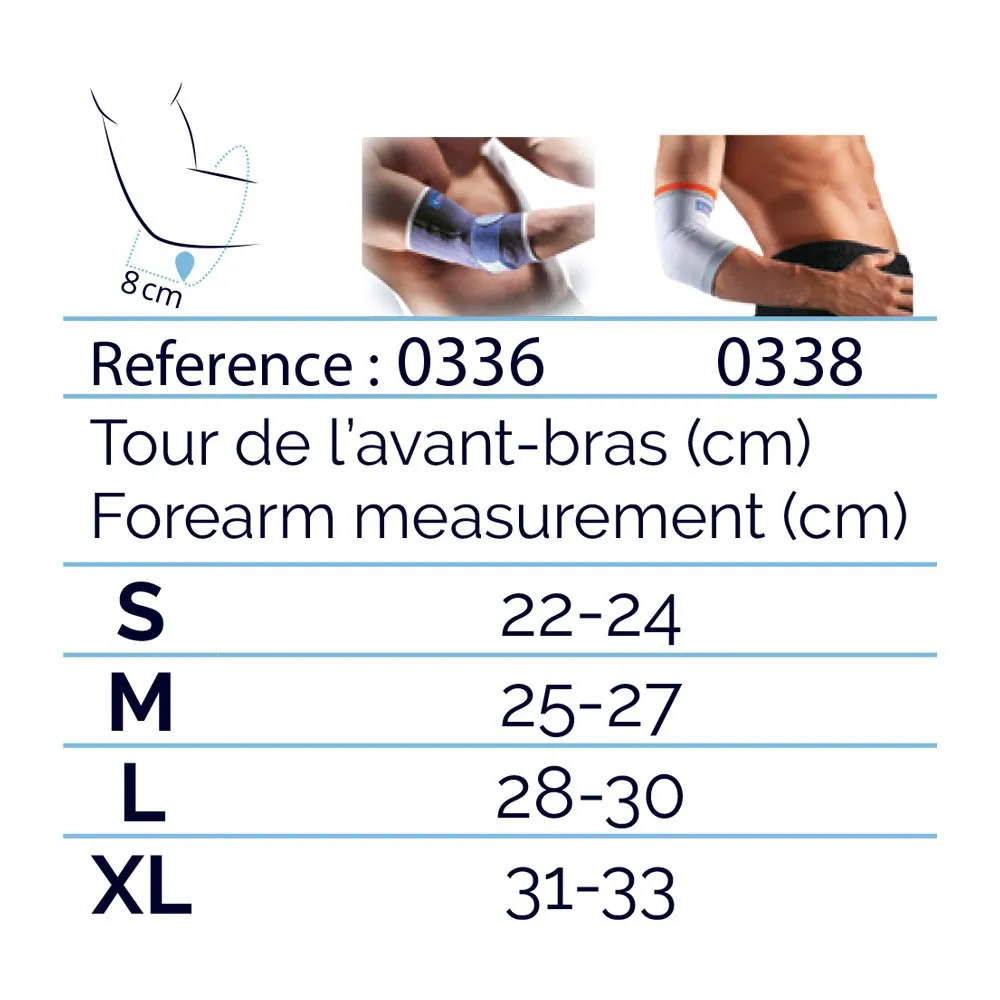 Coudière de maintien intégrale multisports (rugby, volleyball, basketball, handball, tennis, ...) Indications : Entorses bénignes du coude du sportif. Instabilité chronique du coude. Reprise d’activité après traumatismes (entorse, chirurgie). Aide à la stabilisation du coude. Pathologie douloureuse chronique du coude. Niveau de maintien : 2/5 maintien compressif Couleur : Blanc Tailles : du S au XL Composition : 59% Polyamide, 38% Polyester, 3% Elasthanne Lavage en machine à 30° Ce produit est un dispositif médical réglementé qui reçoit à ce titre le marquage CE. Lire la notice avant utilisation.