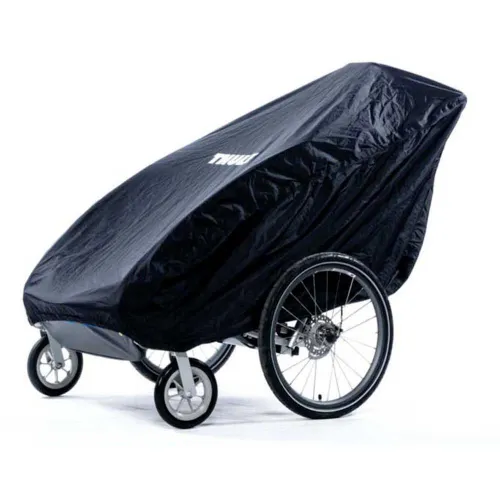 Housse en tissu robuste pour protéger votre remorque pour enfant Thule lorsque vous ne vous en servez pas.