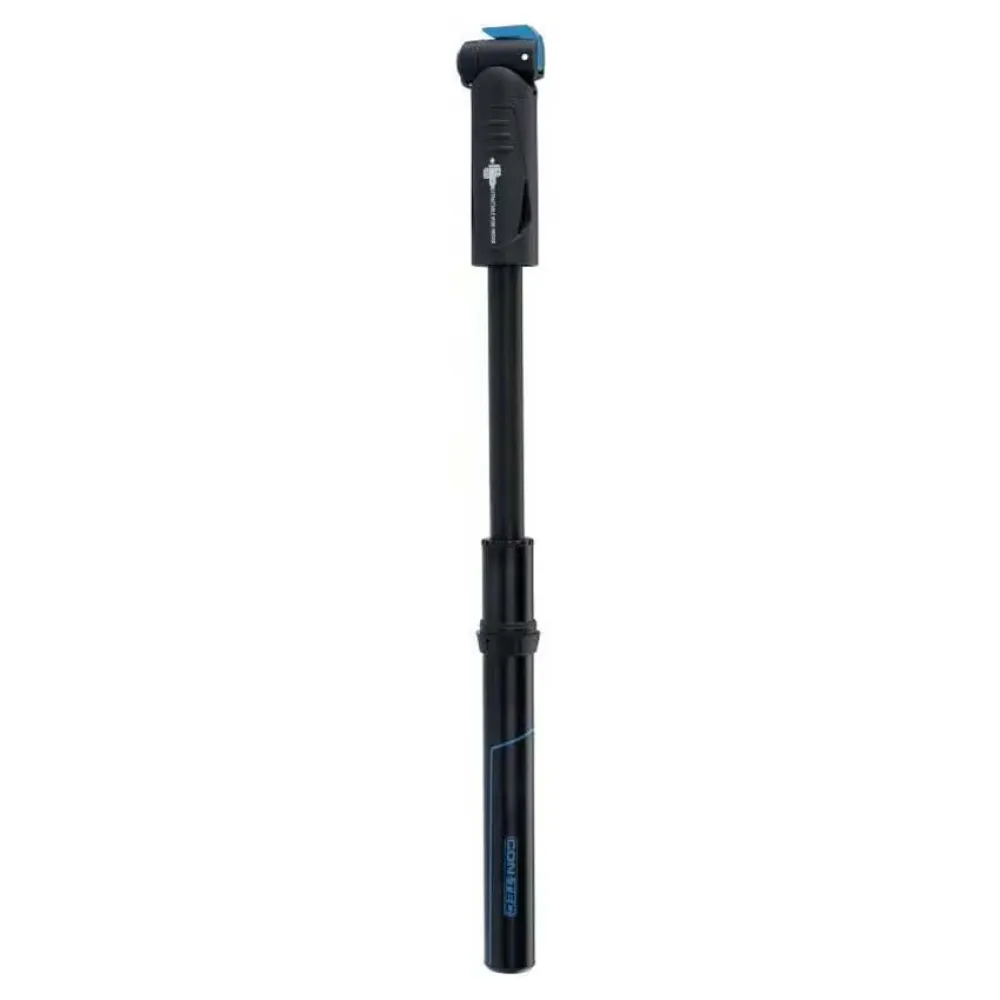 CONTEC mini pompa "Air Support Flex" 7 bar / 100 psi, per tutte le valvole, alluminio / plastica, circa 21 cm di lunghezza, confezione self-service, con tubo flessibile lungo 15 cm, incl.: staffa per occhielli portaborraccia, testina a tripla valvola (Schrader, Presta, Dunlop)