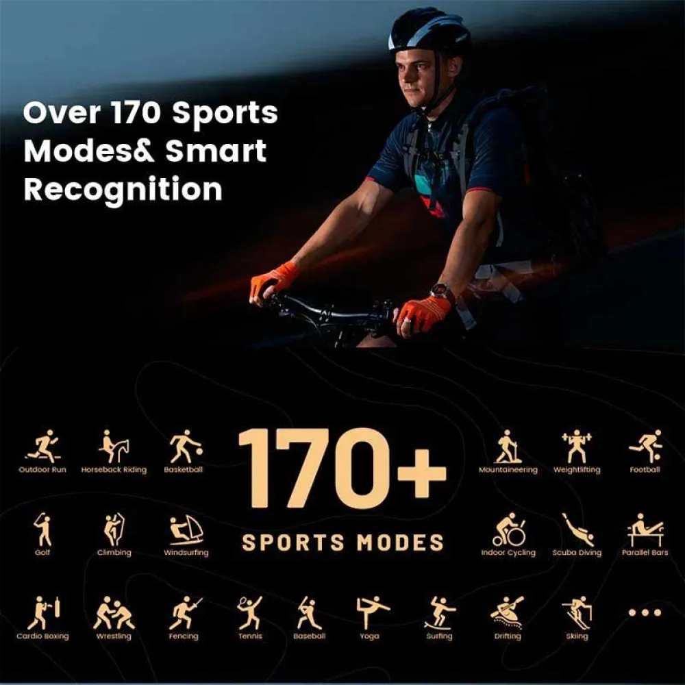 - Riconoscimento intelligente delle modalità sportive: 6 sport (Camminata, Corsa, Ciclismo, Ellittica, Vogatore, Sedentario)