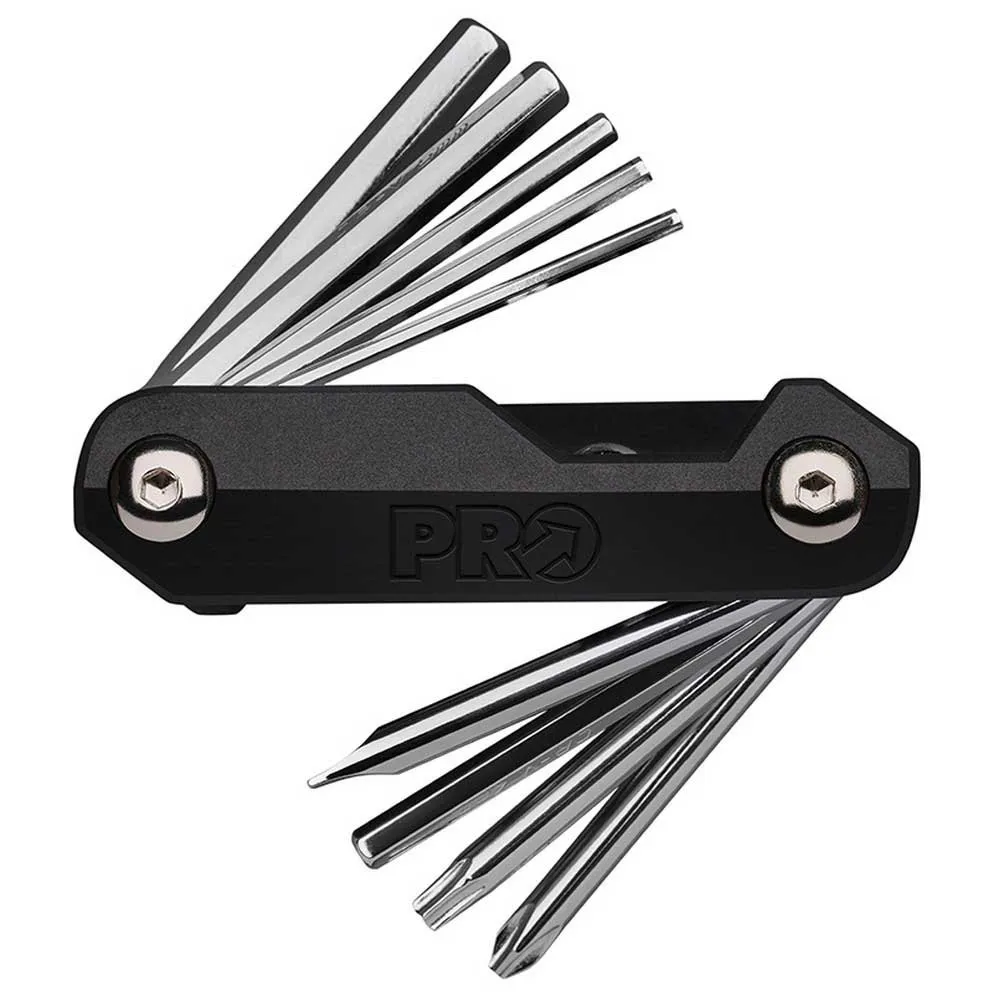 Progettato per offrirti una migliore esperienza sportiva in bicicletta, PRO Mini Tool 10 Functions vanta 10 funzioni racchiuse in un corpo compatto in resina. Le punte in acciaio temprato incluse nell'utensile sono: Hex 2 / 2.5 / 3/4/5/6/8, Torque 25; così come un PH2 e un cacciavite piatto.