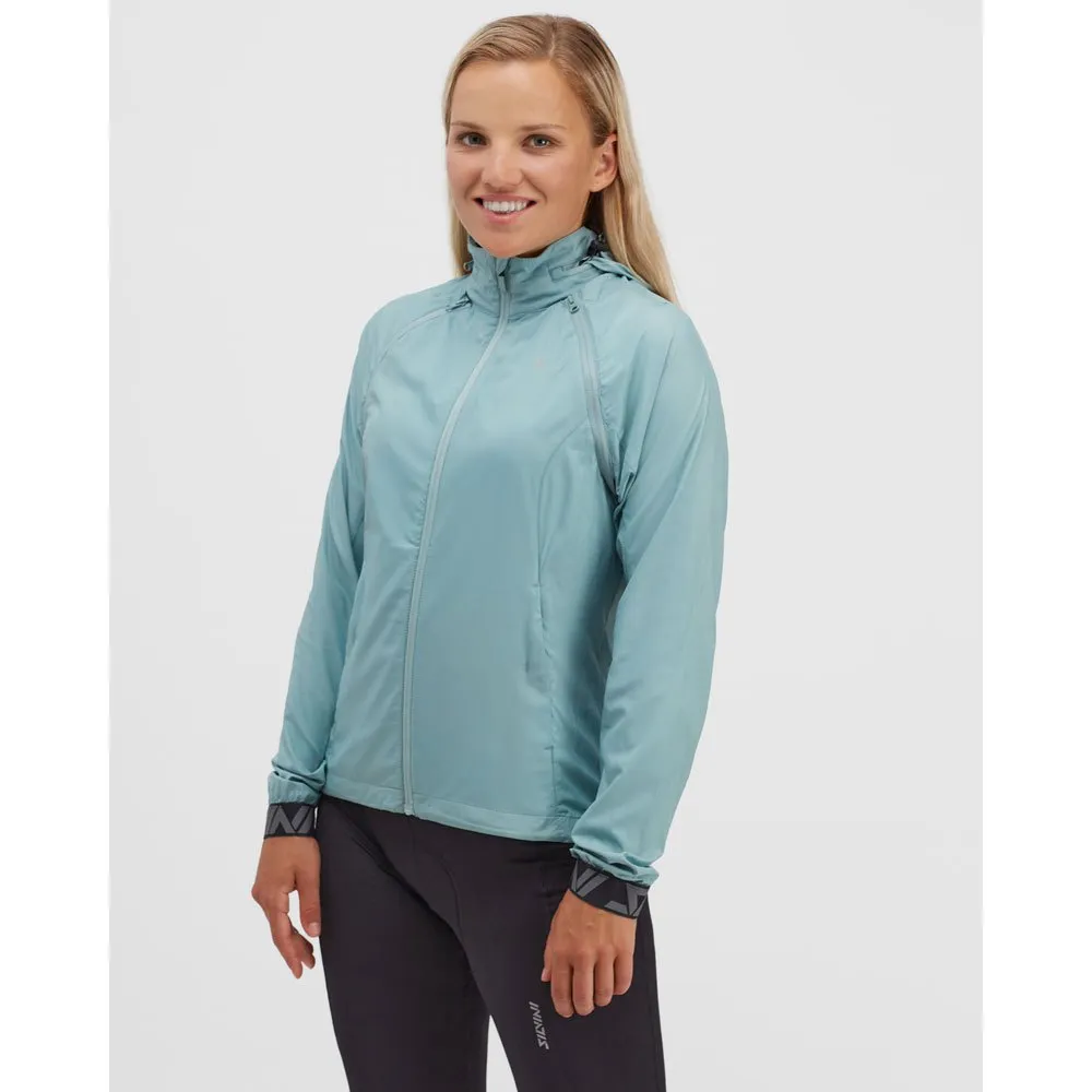 Vetta è una giacca antivento sportiva da donna con maniche staccabili realizzata in materiale Windbreaker WR antivento, traspirante e a trama fitta.