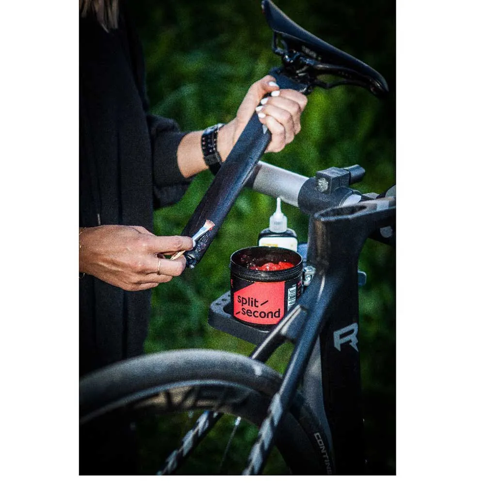 La pasta di assemblaggio Split Second Carbon è stata sviluppata per l'assemblaggio di componenti in carbonio e alluminio riducendo lo slittamento delle parti assemblate grazie all'aumento dell'attrito dei componenti. La pasta di montaggio consente di ridurre le coppie di serraggio. Questo effetto previene efficacemente il danneggiamento dei componenti di alta qualità a causa del loro serraggio eccessivo.