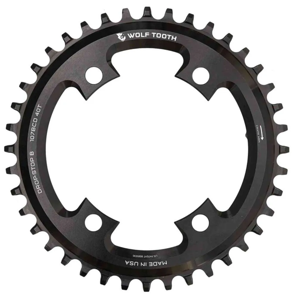 - La tecnologia Drop-Stop previene la caduta delle catene. Sulla corona larga/stretta brevettata da Wolf Tooth, il lato largo del dente ha il massimo contatto sul lato trasmissione che distribuisce il carico e migliora la durata della corona. Il lato stretto consente lo spazio libero per fango e detriti riducendo l'attrito.