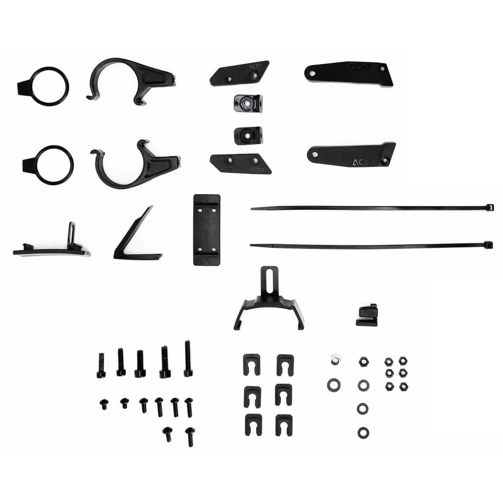 Past op de meeste 29'' mountainbikes, maximale bandbreedte 2.6'', BB Mount: Mount to Bottombracket, glanzende pictogramdetails, ACID-adaptersysteem, FEM-geoptimaliseerd ontwerp, geïntegreerde lichtkabelgeleider, compatibel met ACID-achterlichtintegratie, set inclusief steunen met kartelen