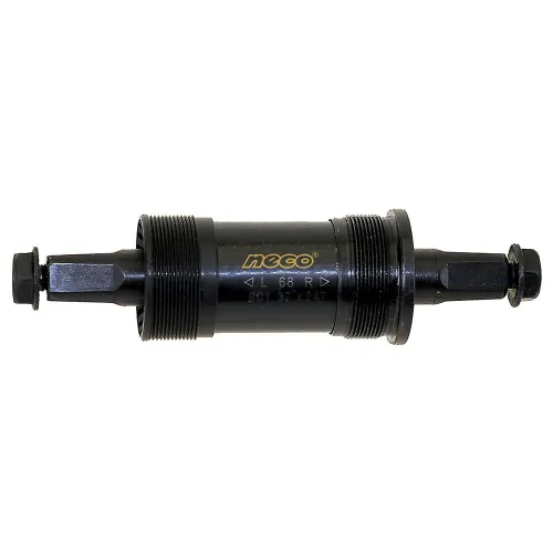 Het is een van de goedkoopste Neco cartridge brackets: de body en de rechtercup zijn van staal, de linker van kunststof; beide cups hebben geen stofkappen. Merk op dat hij, net als alle Neco brackets, asymmetrisch is (de as steekt verder naar rechts uit), in tegenstelling tot die van Shimano.