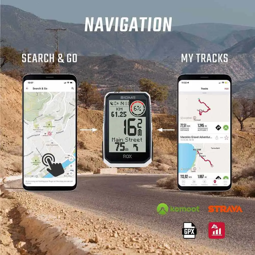 De Rox 4.0 is vooraf geladen met wereldwijde kaarten en biedt stapsgewijze navigatie, zodat je nooit verdwaalt, zowel op als buiten de gebaande paden. Maak eenvoudig routes aan in de SIGMA RIDE-app of importeer ze vanuit Komoot en Strava, en geniet van naadloze navigatie direct op je stuur.