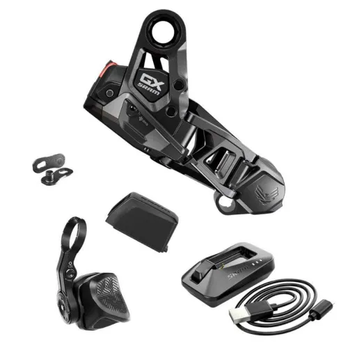 - BEVAT AXS-compatibele GX Eagle Transmission derailleurbehuizing, AXS Pod Controller, AXS-batterij, batterijlader en Eagle T-Type PowerLock.
