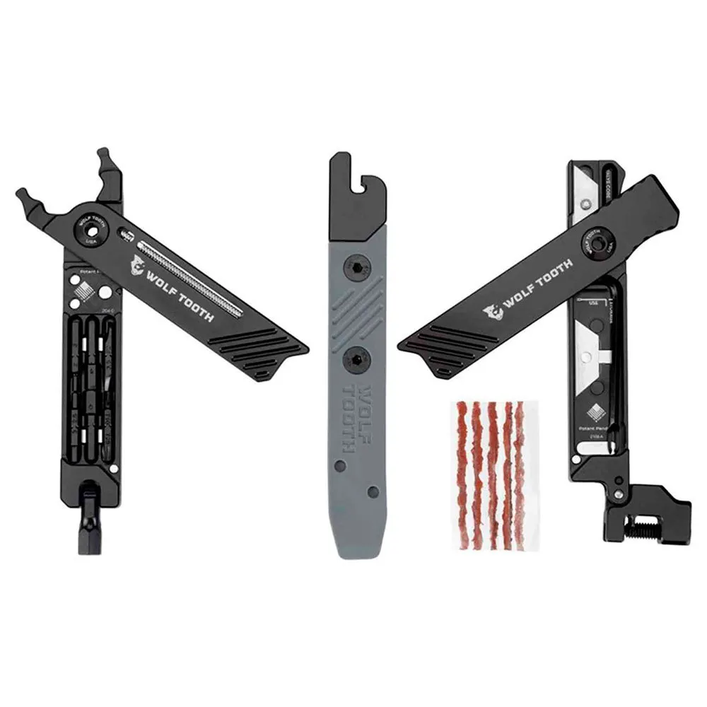 8-BIT KETTINGBREKER + UTILITY MES MULTI-TOOL heeft vier functies. Het heeft een kettingbreker aan het ene uiteinde en een intrekbaar mes aan het andere. Het kettinggereedschap wordt bediend door een meegeleverde 3 mm inbussleutel L die ook dienst doet als een bandpluginbrenger. Een machinaal bewerkte gleuf past op de L-sleutel en verandert de hele multitool in een bandpluginbrenger, waarbij het gevorkte uiteinde van de L-sleutel naar buiten steekt. De handgrepen van deze multitool schuiven open om plaats te bieden aan bandenpluginserts, een ventielkern en een reserve mini-mesje. De vierde functie is de 16 mm kettingbrekerkop die kan worden gebruikt om een losse crankarm vast te zetten tijdens ritten.