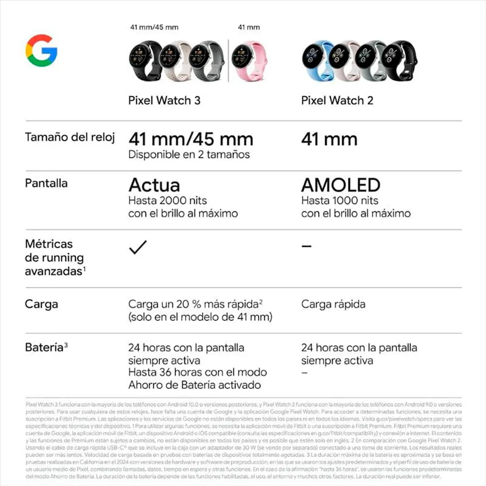 På toppen av det kan du nyte alt dette med et høyt nivå av kraft og effektivitet takket være Qualcomm SW5100-prosessoren som Google Pixel Watch 3 er utstyrt med, som optimaliserer levetiden til sitt 420 mAh batteri for å ta det opp til 24 timers bruk med funksjonen for alltid-på-skjerm eller opptil 36 timer med Battery Saver-modus aktivert.