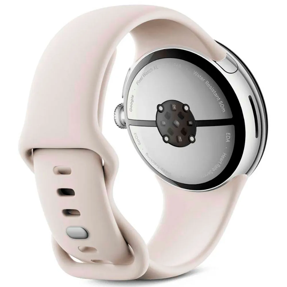 45 mm aluminiumskasse - Sirkulær LTPO AMOLED-skjerm - 320 ppi oppløsning - 4G LTE - Bluetooth 5.3 - Wi-Fi - GPS - Optisk FC-sensor med flere baner - SpO2-sensor - Elektrokardiogram - Hudtemperatursensor - IP68 og 5 ATM motstandssertifiseringer - 420 mAh batteri - Google Pixel Watch-app - Porselensfarget sportsarmbånd - Sølv.