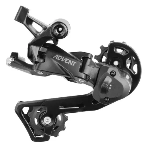 Microshift Advent bakgir, 9 gir, robust, med kjedestabilisator (clutch), godt egnet for en 1 x 9 girs girkasse. Den super korte kassen har en kasse som er liten nok til å passe på en sykkel med 20 tommer hjul. Ratchet clutch og returens fjærspenning er finjustert for å kompensere for den mindre kassen og den lettere kjeden, slik at giret kan gi raske, presise og jevne gir. Den helt metallke kroppen tåler støt og gir ekstra stivhet.