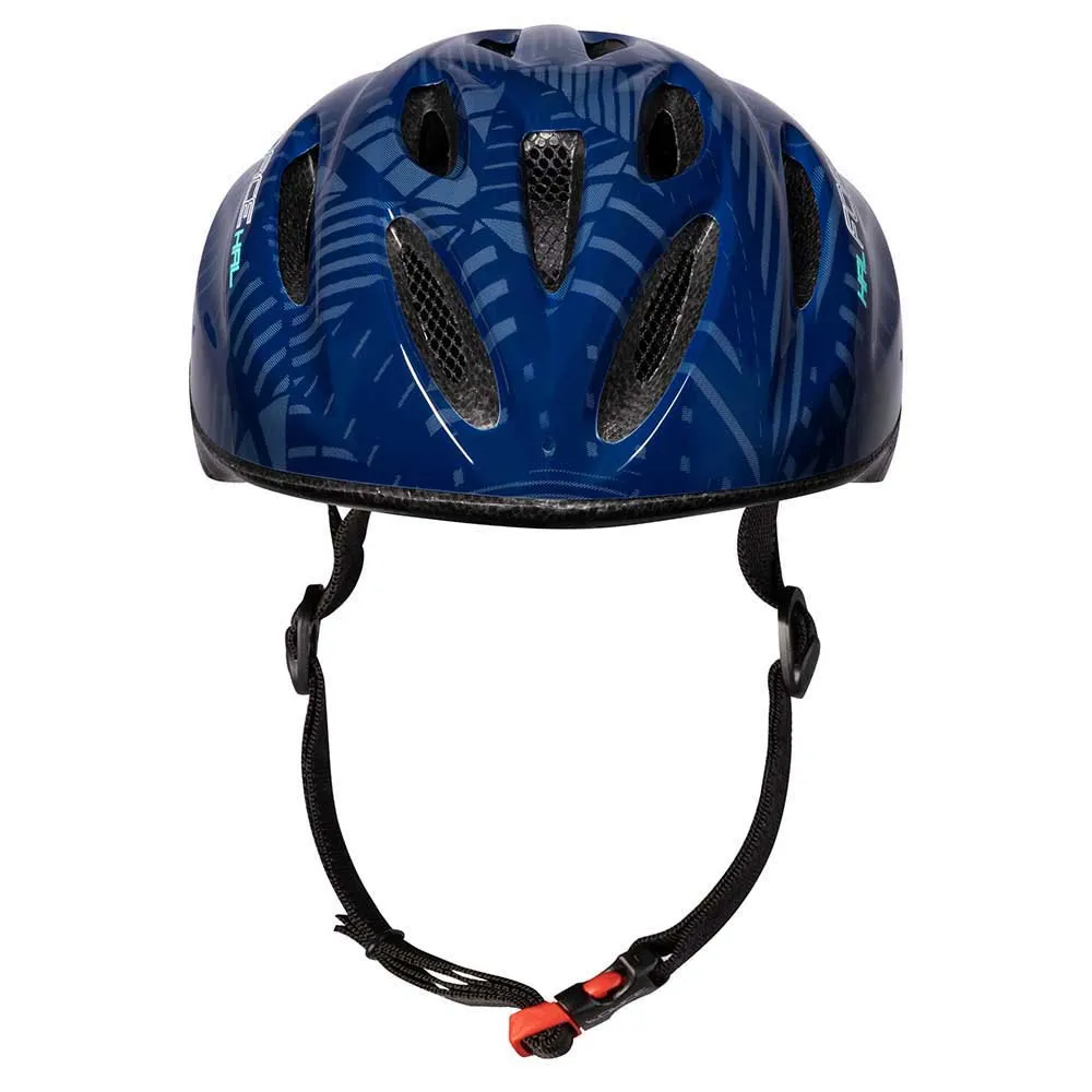 Kask Hal Helmet wykonany jest z wytrzymałej i lekkiej skorupy poliwęglanowej, dzięki czemu skutecznie pochłania wstrząsy i chroni głowę rowerzysty w przypadku wypadków lub zderzeń. Kolor granatowy dodaje kaskowi odrobiny stylu, dzięki czemu jest on atrakcyjny wizualnie dla rowerzystów, którzy preferują bardziej żywy wygląd.