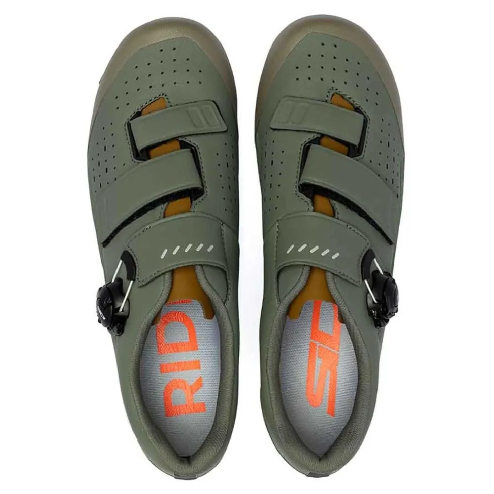 Połączenie między Tobą a Twoim rowerem jest udoskonalone dzięki podeszwie MTB SR17. Ta lekka, ale wytrzymała podeszwa została zaprojektowana z myślą o sztywności, zapewniając wyjątkowy transfer mocy dla wybuchowego przyspieszenia i wydajnego wspinania się. Wzór bieżnika został specjalnie zaprojektowany, aby zapewnić doskonałą przyczepność, gdy jesteś poza rowerem, pewnie poruszając się po odcinkach "hike-a-bike" lub trudnym terenie. Jego sprytna konstrukcja ułatwia również odprowadzanie błota, utrzymując bloki w czystości, co zapewnia niezawodne wpinanie pedałów. Dla zwiększenia trwałości i wartości, podeszwa posiada wymienne wkładki bieżnika i jest kompatybilna z kolcami, które zapewniają dodatkową przyczepność w najtrudniejszych warunkach. Atrybuty: