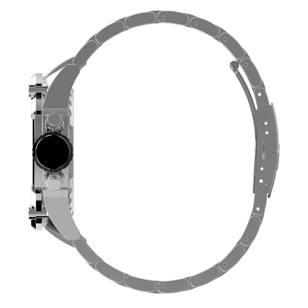 Bransoleta i futerał ze stali nierdzewnej, szkło mineralne.