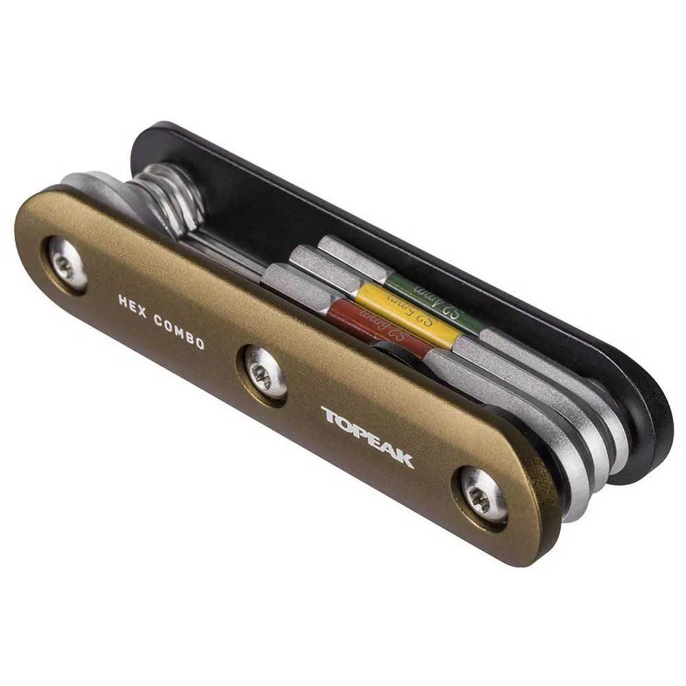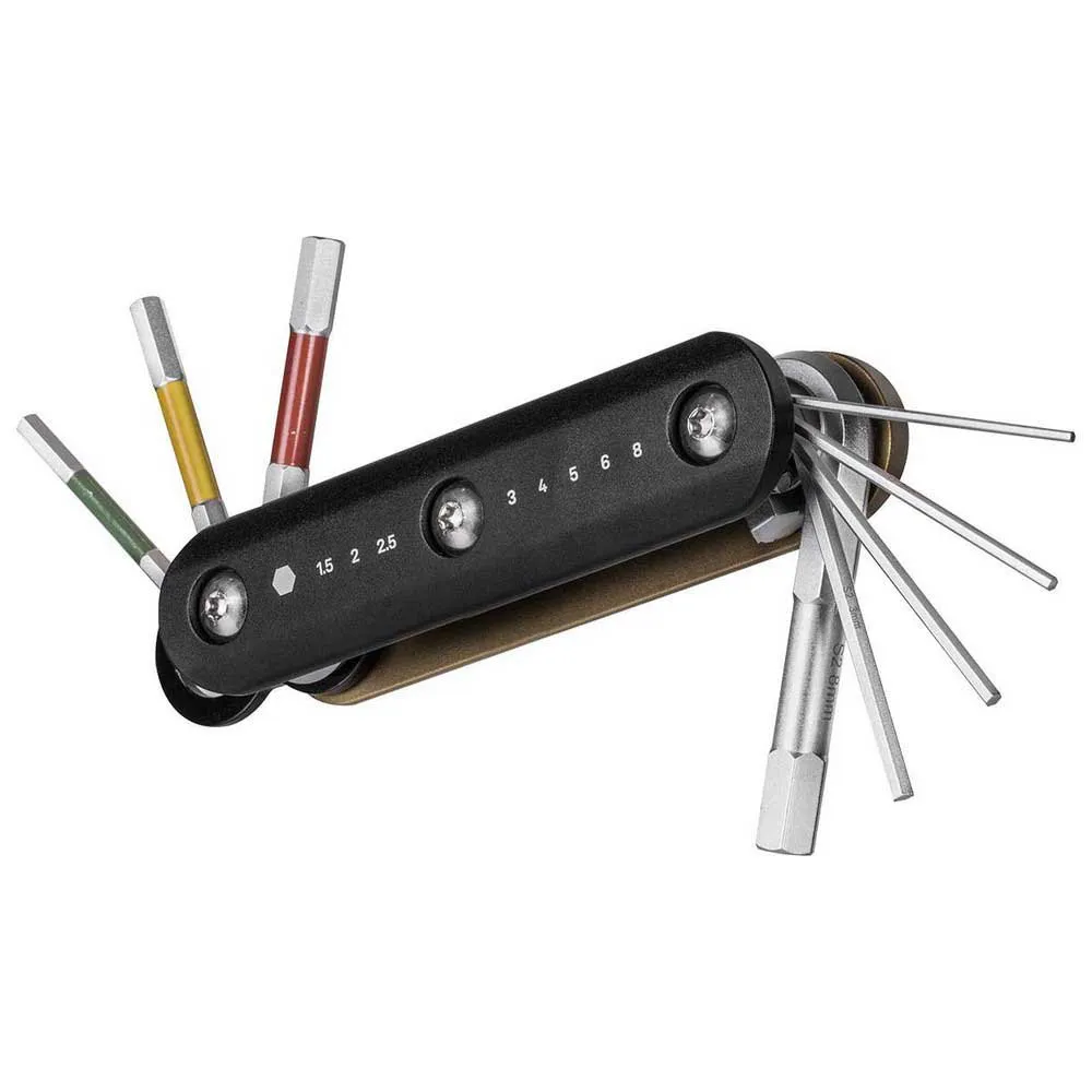 Hex Combo oferuje 8 profesjonalnych, wytrzymałych kluczy imbusowych ze stali hartowanej S2 o wysokiej wytrzymałości na rozciąganie, co zapewnia lepszą odporność na zużycie i dłuższą żywotność narzędzia. Hex Combo łączy najczęściej używane rozmiary sześciokątów w jednym wygodnym składanym narzędziu z trwałym, wygodnym i gładkim aluminiowym korpusem. Kodowane kolorami klucze imbusowe 4/5/6mm ułatwiają identyfikację, a wbudowany brelok ułatwia powieszenie lub przywiązanie.