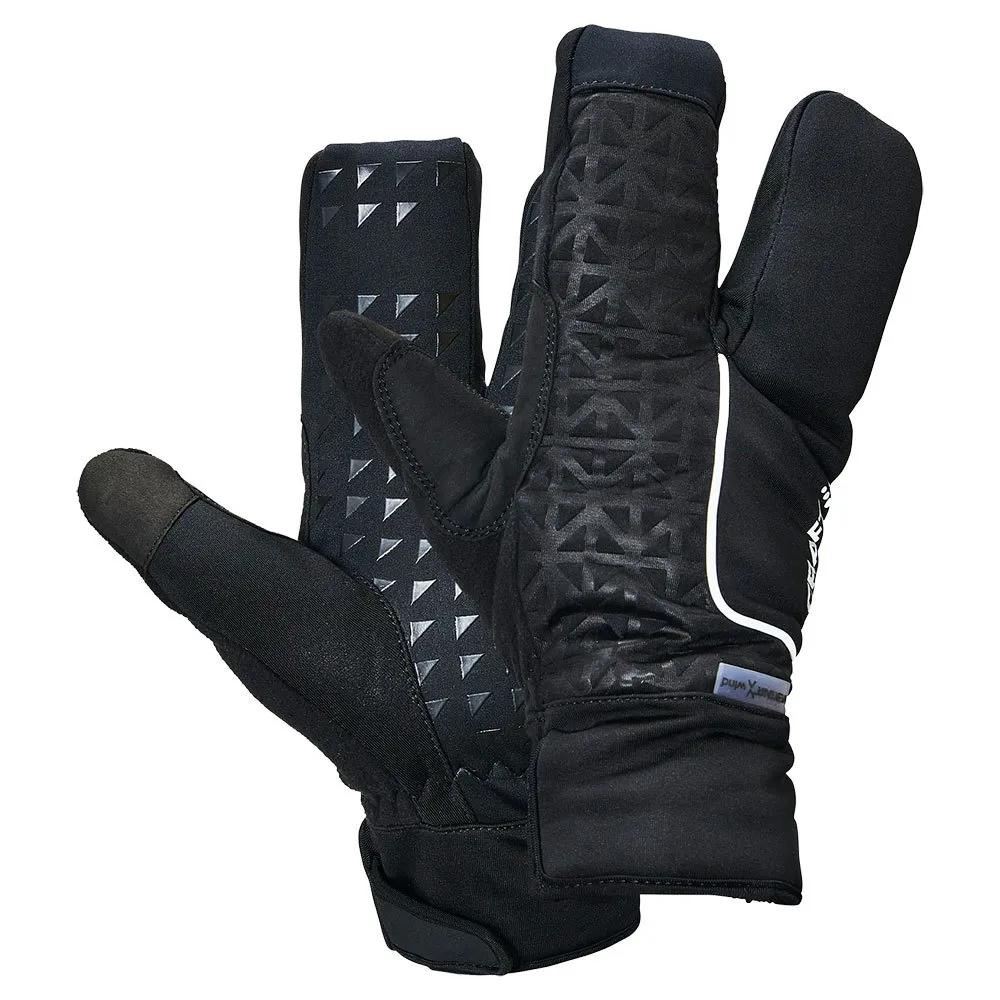 A luva Siberian 2.0 Split Finger é uma luva quente com tecido resistente ao vento e à prova d'água e forro polar para andar de bicicleta em condições de frio e chuva. O design de 3 dedos fornece calor extra, enquanto a impressão em silicone na palma da mão garante ótima aderência. Vem com ajustador de Velcro para um ajuste perfeito, impressão reflexiva para maior visibilidade e terry macio no polegar. Desenho pré-moldado.