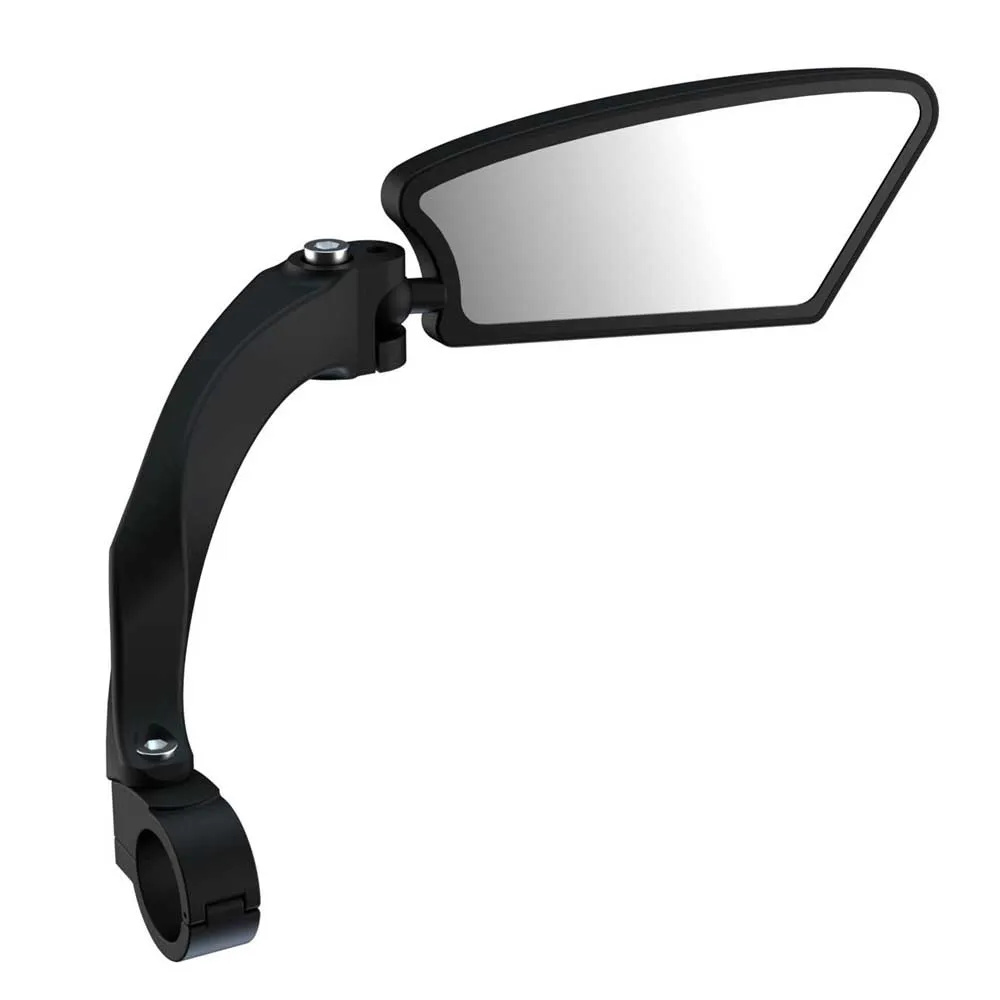 Projetado para caber dentro dos controles e punho do guidão, o E-Mirror fica fora do caminho quando surge a necessidade de encostar uma e-bike mais pesada em uma parede. Com braçadeiras de barra de alumínio e um ajuste totalmente ajustável, este espelho versátil é igualmente adequado para uma bicicleta convencional.