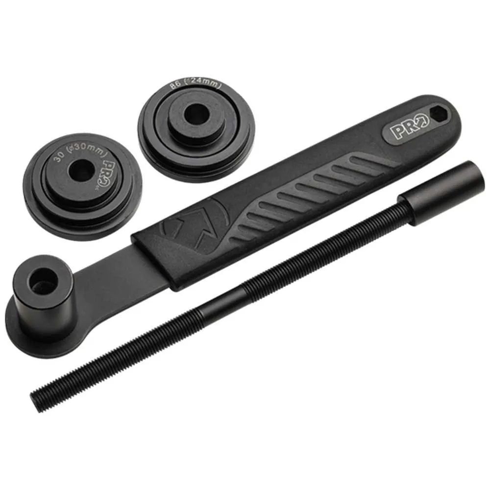 A prensa de suporte inferior PRO é uma prensa BB para instalação de suportes inferiores com rolamentos de eixo de 24 e 30 milímetros. Projetada para fornecer a você uma melhor experiência de bicicleta esportiva, a prensa de suporte inferior PRO garante a instalação correta de suportes inferiores com eixo de 24 e 30 milímetros rolamentos. Possui uma construção em aço durável e uma pega ergonômica de dupla combinação.