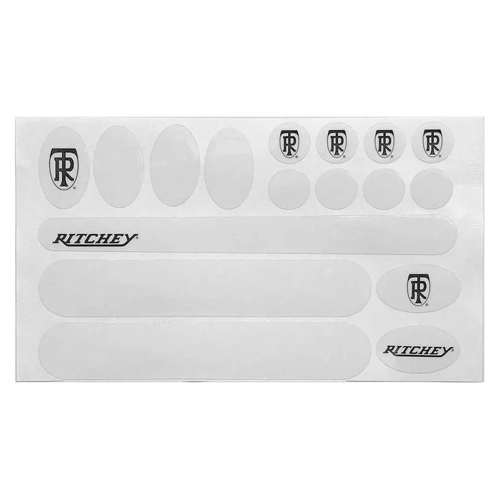 Alguns desses adesivos transparentes têm o logotipo da Ritchey, outros não.