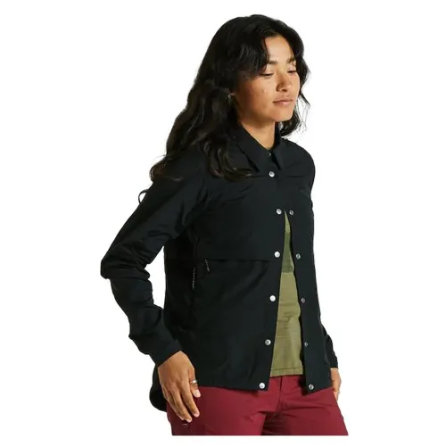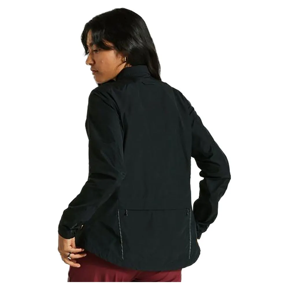 Jaqueta corta-vento leve e embalável com bolsos funcionais. Feito de HC-Lite resistente ao vento e à água, que seca rapidamente, é leve e pode ser encerado para maior resistência ao vento e à água. Gola abotoada para proteção extra contra o vento, mangas articuladas com punhos elásticos, otimizadas para andar de bicicleta. Vários bolsos - bolsos na parte superior, um com fecho de botão de pressão, um com zíper. Dois bolsos de mão com zíperes e um bolso com zíper bidirecional na parte inferior das costas, oferecendo armazenamento extra. Faixas refletivas nas costas. Pode ser embalado em seu próprio bolso no peito. Parte da série Specialized/Fjällräven para passeios urbanos e aventuras de bikepacking.